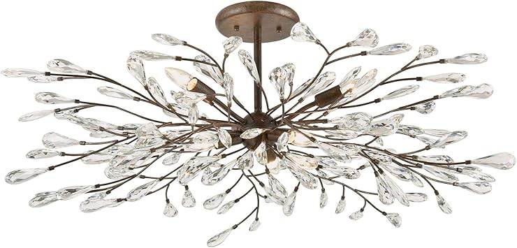 Crystal 6-Light Semi Flush Mount : Elk Lighting 18255 6 Crislett 6 Light Sunglow Bronze With Clear Crystal Semi Flush Mount Amazon Com / The crystal flush mount ceiling fixtures are wonderful to use if you want the added light reflection that comes from the sparkling perfectly cut glass.. Ellisia 19 3/4w silver organza shade chrome ceiling light. Featuring a radiant chrome finish and finely cut premium grade 30% full lead clear crystals, this elegant ceiling light will give any room sparkle and glamour. An abundance of large crystal leaves are enhanced by the nature inspired branches that are finished in burnt bronze. These fixtures will easily transform an ordinary room, into an extraordinary one. Crystal flush mount chandelier matte black hallway bedroom fixture 6 light 18.